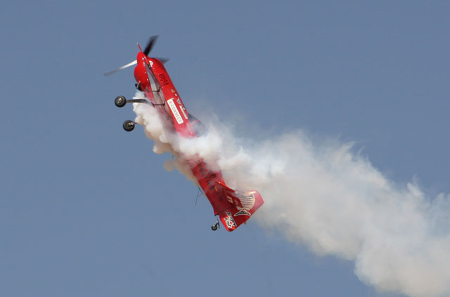 Castor Fantoba, winner of FAI Championship Aeros is seen performing during the Al Ain Aerobatic show 2011 at Al Ain International Airport. Image Credit: Abdul Rahman/Gulf News